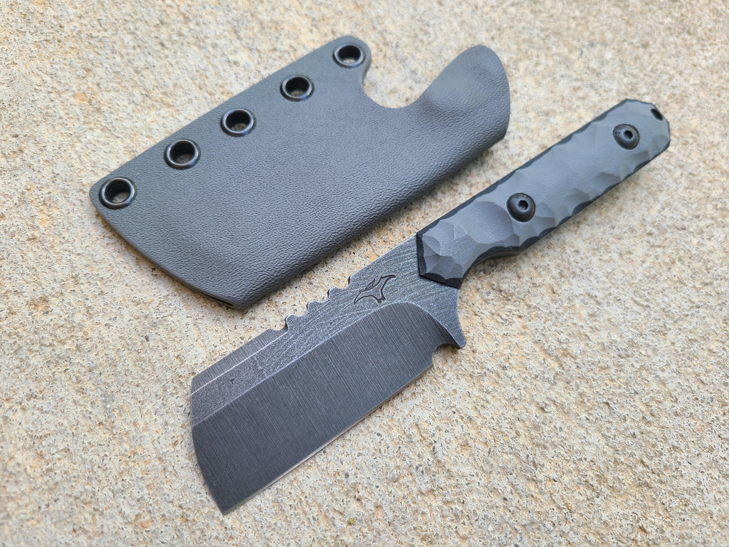 - Razor sharp Mid-Sized Cleaver in CRUWEAR steel with Dark Gray G10 scales w/ Black liners